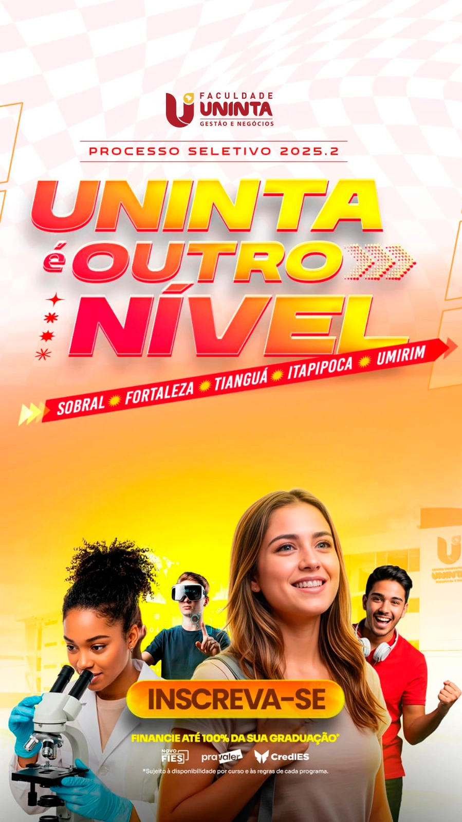 Chega a Fortaleza a Faculdade Uninta Gestão e Negócios, um centro de referência no ensino superior. Trazendo a marca de uma mantenedora com mais de 24 anos de tradição e eficiência em educação, a Faculdade Uninta Gestão e Negócios chega para revolucionar o mercado, oferecendo cursos de formação profissional com qualidade comprovada e reconhecida pelo Ministério da Educação (MEC).